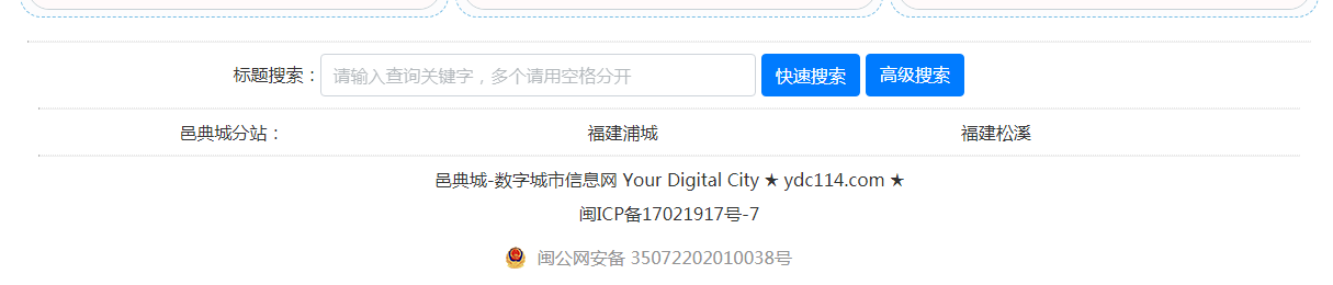 页面下部分为:系统搜索栏、分站链接栏、系统网站相关备案信息栏。