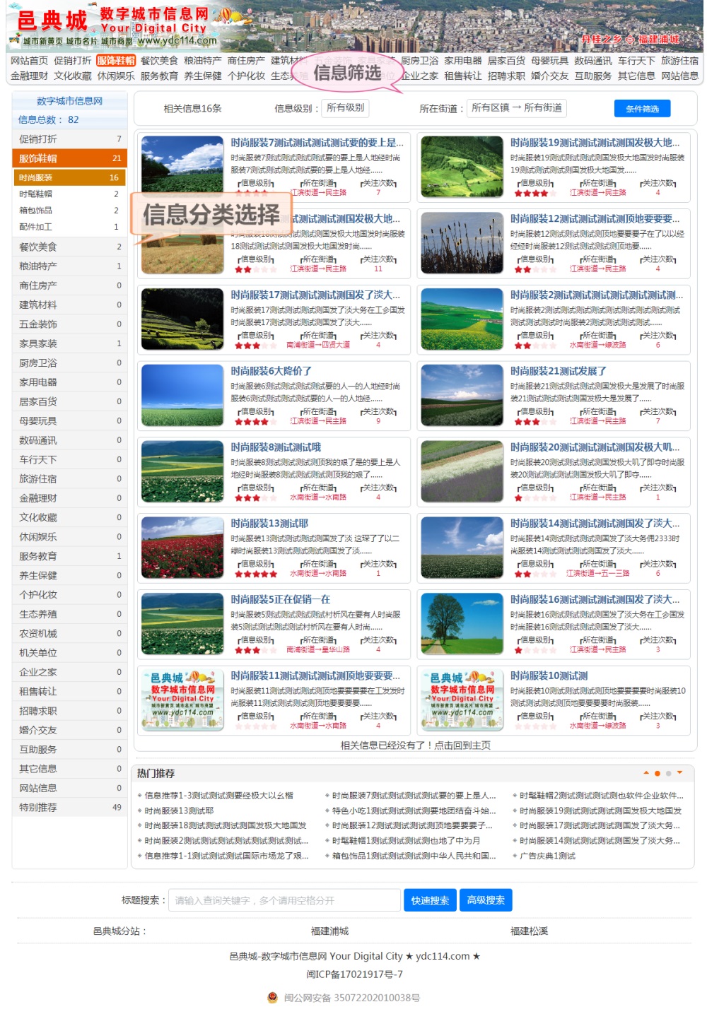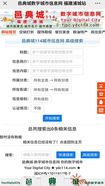 邑典城数字城市信息网是一个汇集城市本地商户、公司、企业、工厂、生活类信息的网站。在网站里可以查询到本地提供各类服务、产品销售的商户及公司信息;企业和工厂的生产服务及招聘信息;商场促销活动信息、生活类租售房、求职交友、互助服务等信息。