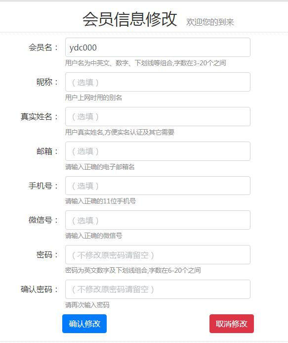 微信登陆后,会员名为微信信息,修改后可以PC端直接登入,登陆后会员名不显示,只显示昵称,微信登陆后昵称自动与微信更新,此处更改无效。