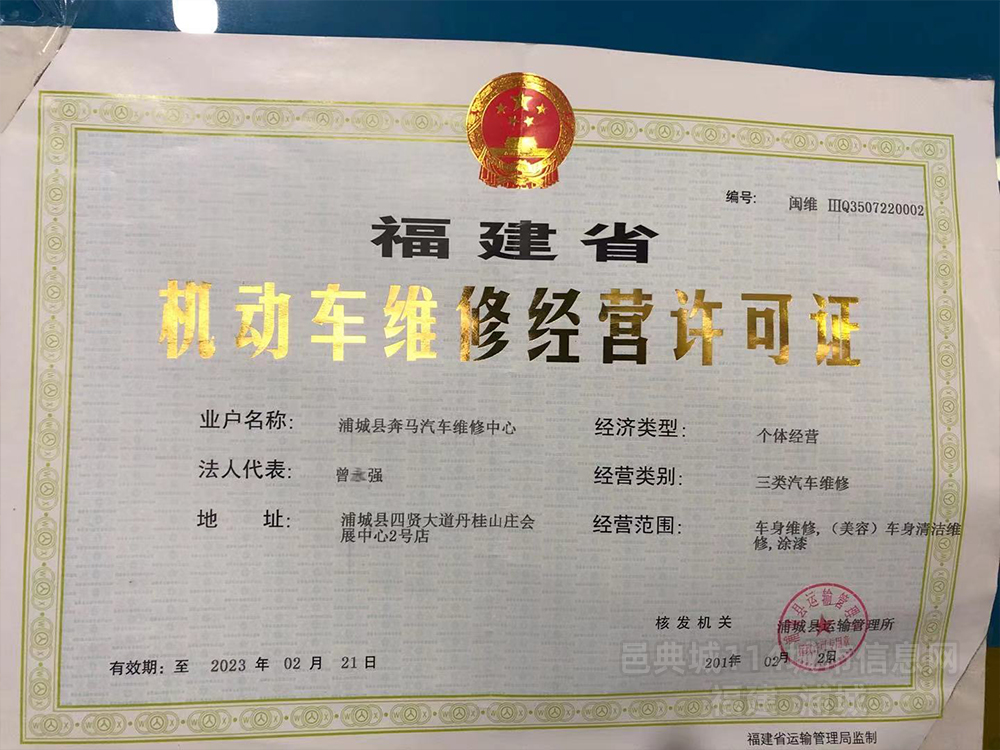 车骑王子汽车漆面快修-浦城县奔马汽车维修中心(浦城连锁)店