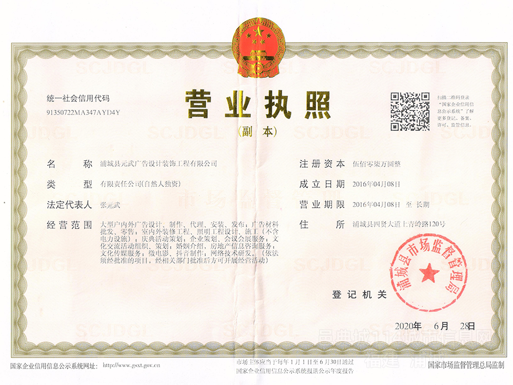 浦城县元武广告设计装饰工程有限公司