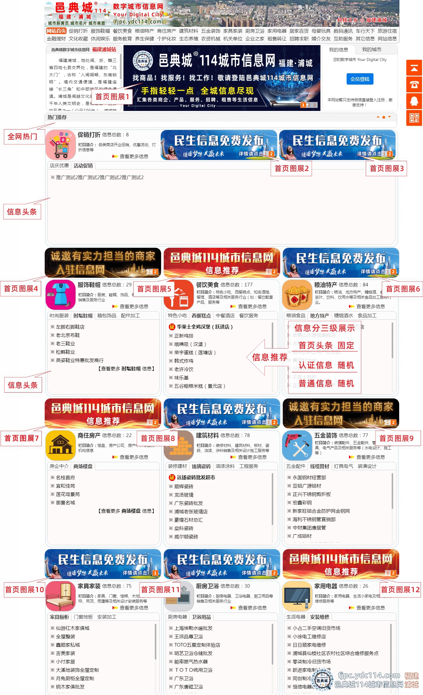 邑典城114城市信息网首页图展推荐情况